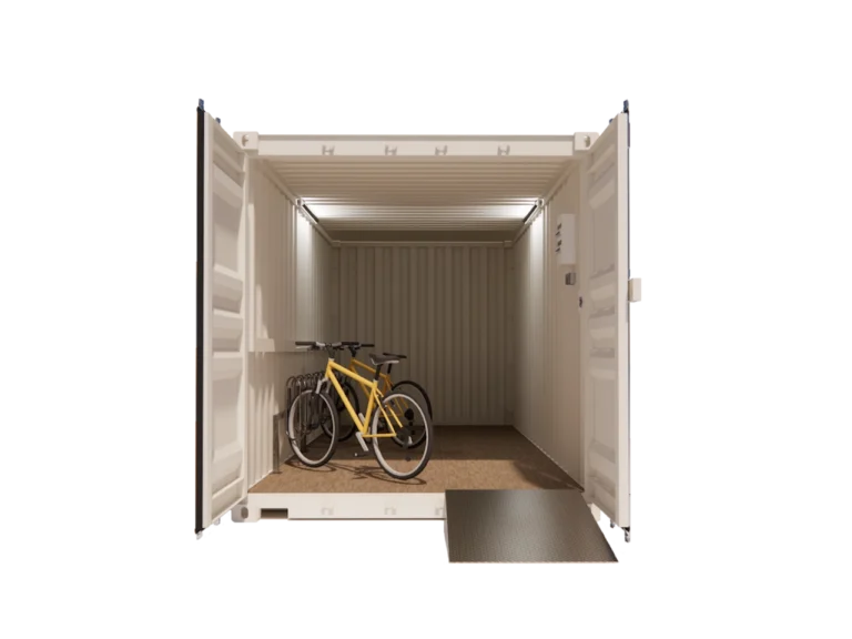 Capacité : 6 places pour vélos électriques (1 prise de recharge par emplacement).