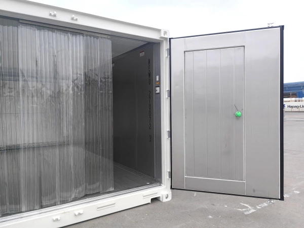 Matériaux : Structure acier corten. Isolation en panneau sandwich 7 cm d’épaisseur (mousse polyuréthane enfermée dans des plaques aluminium). Plancher aluminium. Surfaces intérieures en acier inoxydable et en aluminium.