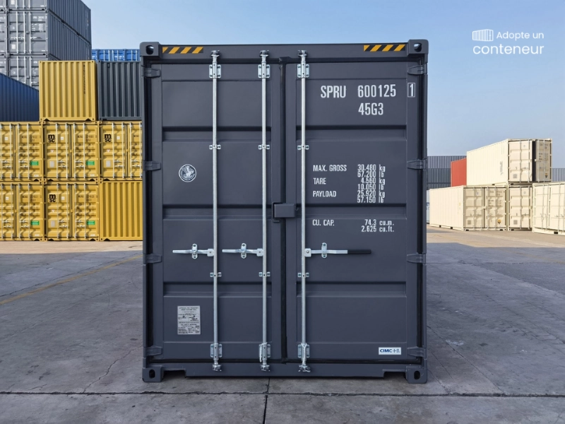 Container maritime quasi-neuf en acier Corten. Intégrité structurelle et étanchéité parfaite. Plancher bois marine de 28 mm d’épaisseur.