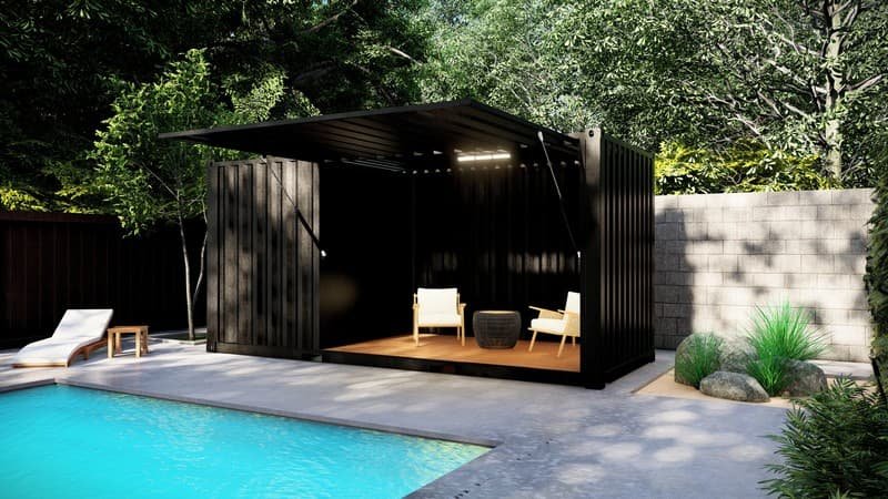 Pool House construite à partir d’un container de 20 pieds dernier voyage (peut présenter des bosses et des enfoncements).