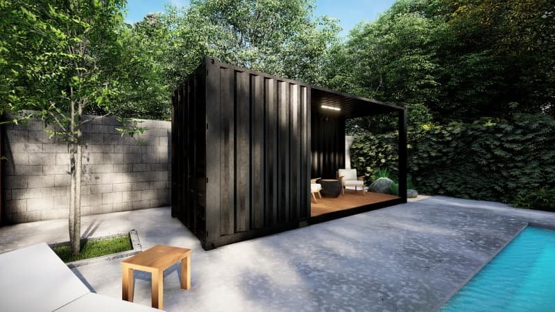 Be the first to review “Pool house en container avec terrasse ouverte et local fermé”